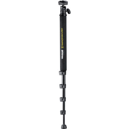 Cullmann MAGNESIT 290 monopod + ball head Max. operating height=150cm The Nanomax 290 Monopod from Cullmann comes complete with a detachable ball head. This 5-section monopod extends to 59 (150cm), folds down to only 19 (48cm) and weighs less than a pound so you can easily transport it in a gear bag or backpack. The unit will support your equipment weighing up to 5.5 lb (2.5 kg). The top section of the monopod is covered in comfort grip foam and each leg section can be easily released and locked again with clip-style leg locks. It has also has an adjustable angle rubber foot for positioning on the ground at most angles. The removable mini ball head has a 1/4 screw thread (a 3/8 -16 adapter is included), making it suitable for use with most compact cameras, DSLRs, camcorders and spotting scopes.